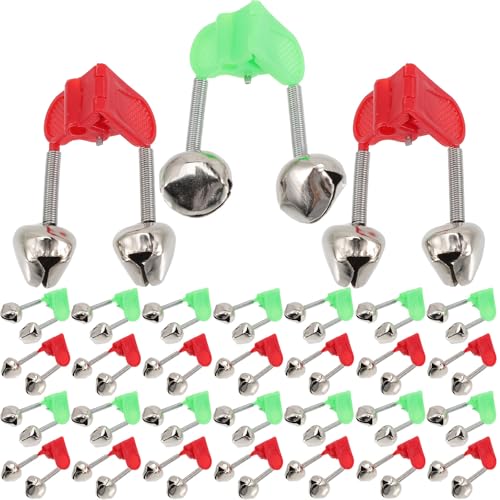 Homoyoyo Lot de 50 Cloches D'alerte Doubles en Acier Inoxydable Rouge et Vert pour Pêche en Mer Indicateur Sonore Portable pour Canne à Pêche Matériel Professionnel et Surfcasting