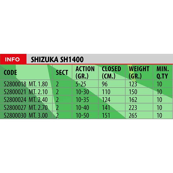 Shizuka Sh1400 10-40 Gr Spinning Rod Vit 2,70 m / 10-40g