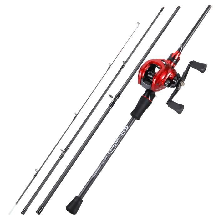 Sougayilang Spinning& Casting Combinaisons de cannes à pêche avec graphite, 2 flans pour la pêche à la perche, moulinet de 1,8 m, droitier