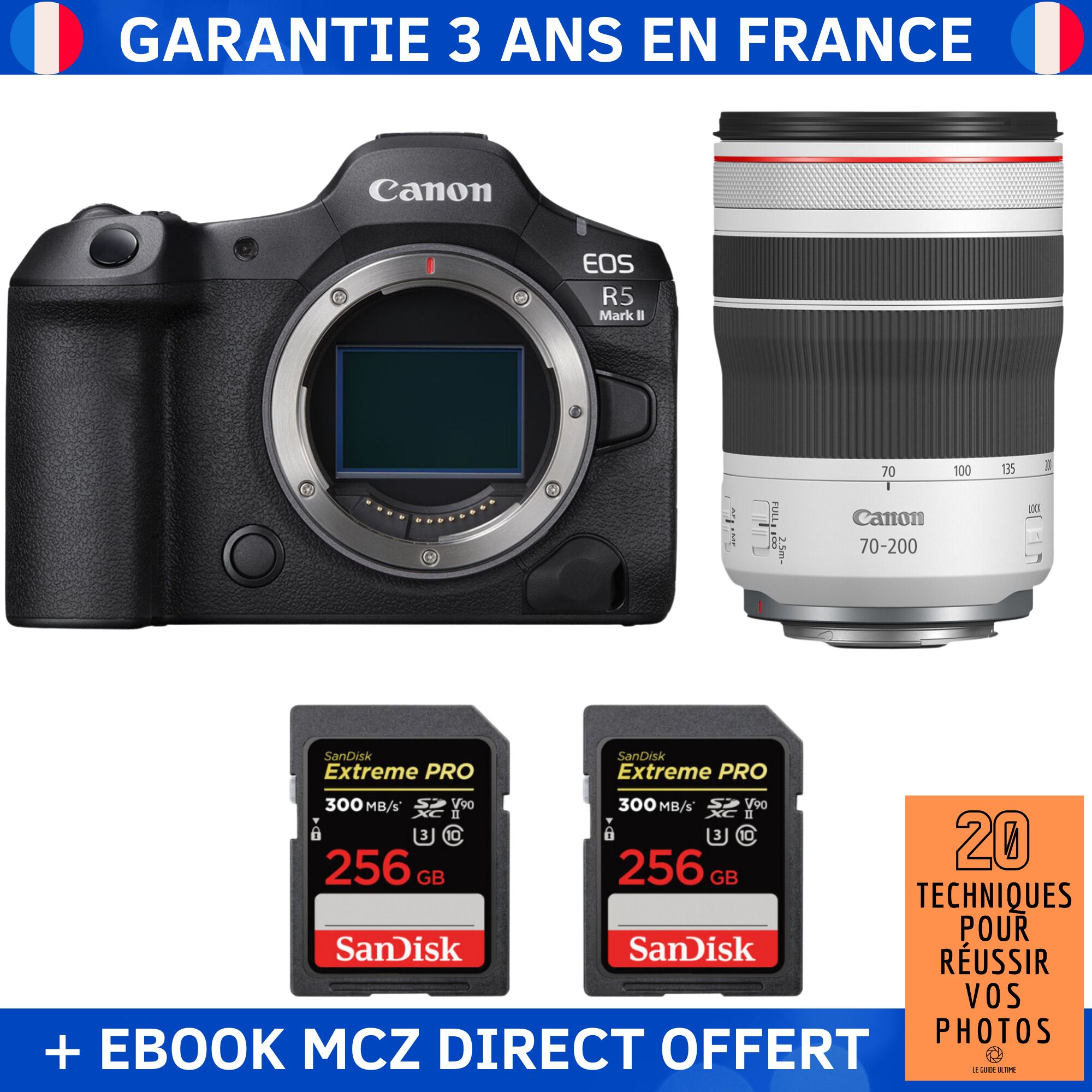 Canon EOS R5 Mark II + RF 70-200mm f/2.8 L IS USM + 2 SanDisk 512GB Extreme PRO UHS-II SDXC 300 MB/s + Ebook '20 Techniques pour Réussir vos Photos' - Appareil Photo Hybride Canon