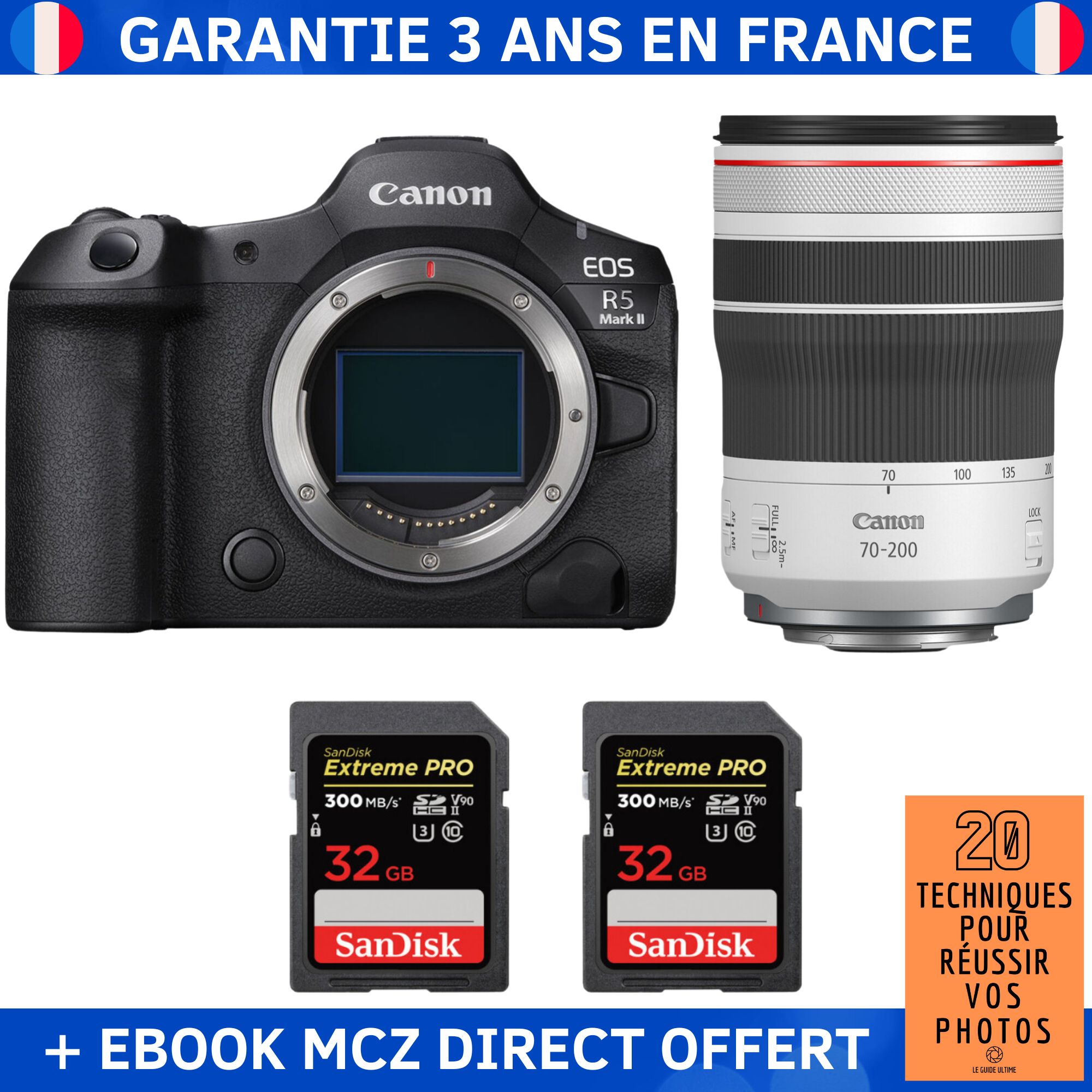 Boitier Canon EOS R5 Mark II + RF 70-200mm f/2.8 L IS USM + 2 SanDisk 32GB Extreme PRO UHS-II SDXC 300 MB/s + Ebook 'Devenez Un Super Photographe