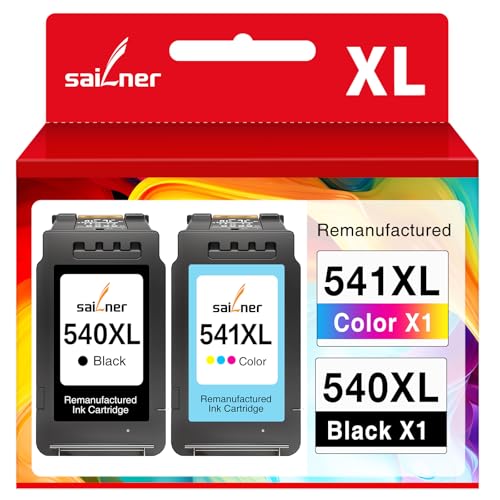 Sailner PG-540XL CL-541XL (1 Noir, 1 Tri-Couleur) Compatible pour Cartouche Canon 540 541 XL Encre pour PIXMA MG3650s MG3600 MX475 MG3650 MG3550 MG4250 TS5150, 2 Pack