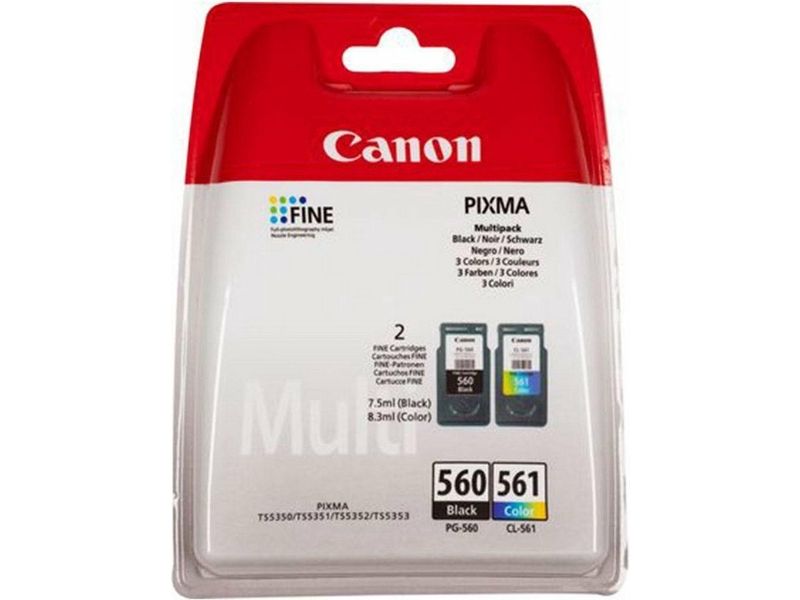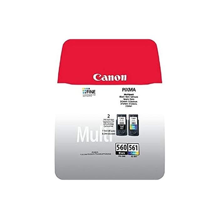 Canon PG-560 / CL-561 Multipack - Pack de 2 - noir, couleur (cyan, magenta, jaune) - original - cartouche d'encre - pour PIXMA TS5350, TS5351, TS5352, TS5353, TS7450, TS7451