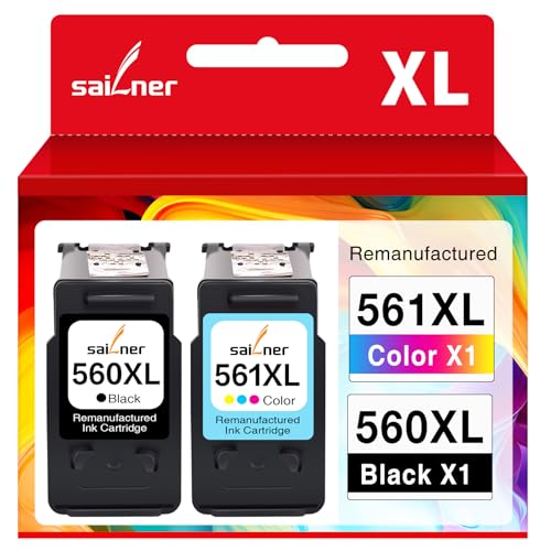 Sailner PG-560/CL-561 XL Cartouches d'encre Remplacement pour Encre Canon 560 561 pour Canon Pixma TS5350 TS5350a TS7450a TS5300 TS5350i TS5351 TS7450 TS5351a, 2 Packs (1 x Noir, 1 x Couleur)