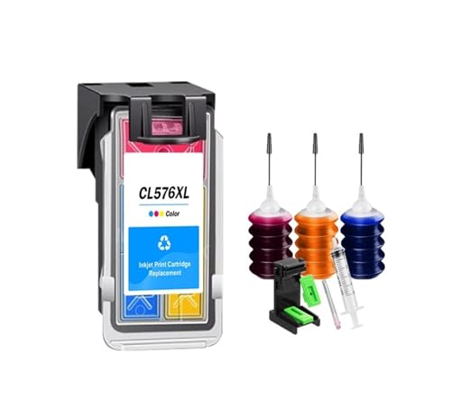 Cartouche d'encre Rechargeable, Compatible for Canon PG575 CL576 575 576 XL PIXMA TS3550i TS3551i TR4750i TR4751i PG-575XL CL-576XL Printer Ink Cartridges(1Tricolor with Ink)