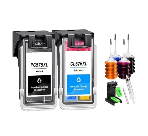 Cartouche d'encre Rechargeable Compatible Canon PG-575XL et CL-576XL, for PIXMA TS3550i TS3551i TR4750i TR4751i(1 Set with Ink)