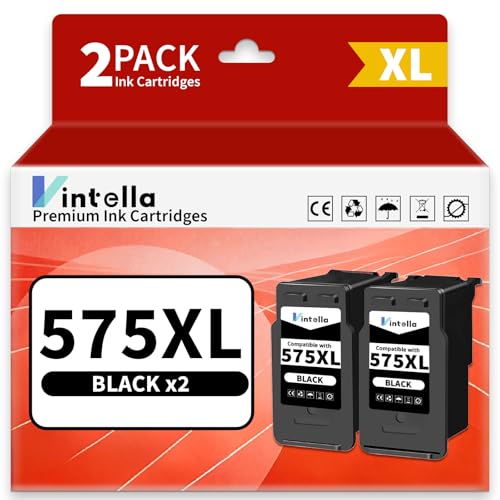 Vintella 575XL PG-575XL Cartouches d'encre Remplacement pour Canon 575 XL Noir pour Canon PIXMA TR4755i TR4756i TS3750i TS3550i TS3551i TR4750i TR4751i TS3751i TS3752i (2 Noir)