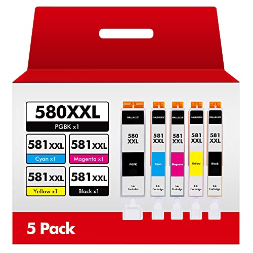 HALLOLUX PGI 580 XXL CLI 581XXL Cartouche d'encre Compatible pour Canon 580 581 XXL pour Pixma TS8150 TS8151 TS8252 TS6150 TS6250 TS8350 TR7550 TS6151 TS6251 TS8250 (5 Pack)