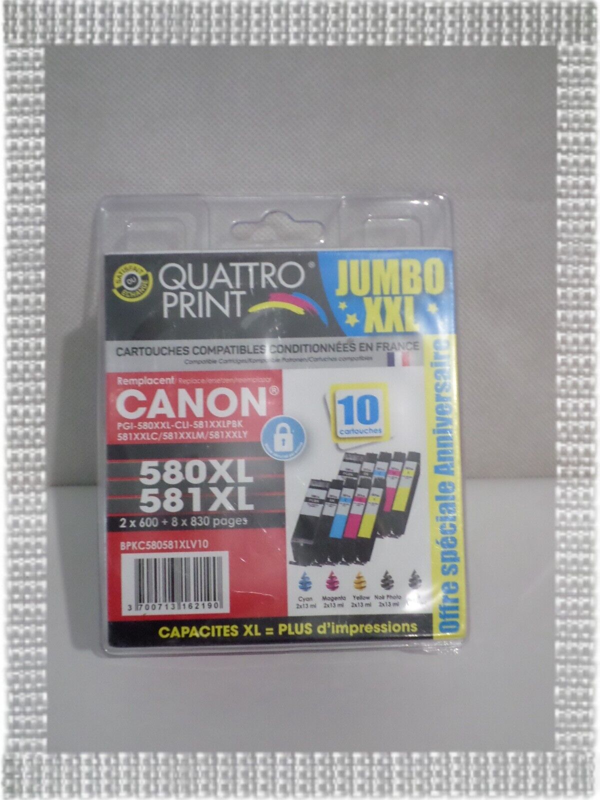 Lot de 10 Cartouches Compatibles Canon 580 XL - 581 XL Quattro Print Neuf