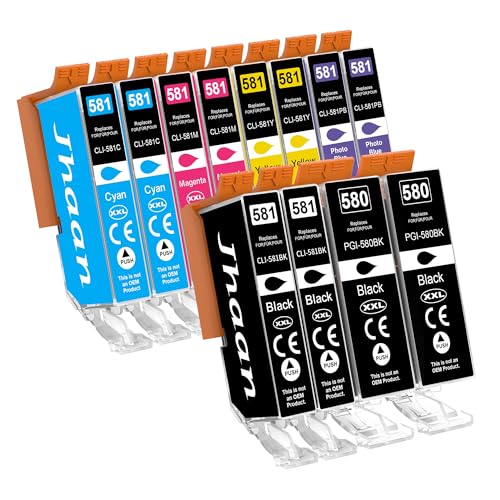 Jhaan 580 581 Cartouches d'encre XXL compatibles avec Canon PGI-580 CLI-581 Compatible avec Pixma TS705 TS6150 TS6151 TS6200 TS6350 TS8150 TR7550 TR7500 TR8550 TR8500 TS91500 TS9155 TS9500 TS8351a