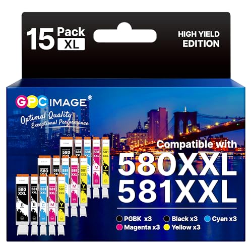 GPC Image CLI-581 PGI-580 XXL Cartouches d'encre Remplacement Compatible pour Canon 581 580 XXL pour TS8150 TS6150 TS8250 TS6151 TR8550 TR7550 TS8151 TS9150 (PGBK/Noir/Cyan/Magenta/Jaune,15-Pack)