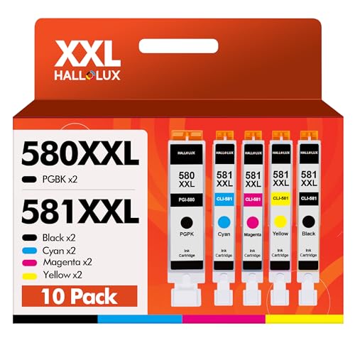 HALLOLUX Compatible Cartouches d'encre 580 581 Remplacement pour Canon 580 581 XXL pour PIXMA TS6150 TS6151 TR8550 TR7550 TS8150 TS8151 TS9150 TS9155 (PGBK/Noir/Cyan/Magenta/Jaune,10-Pack)