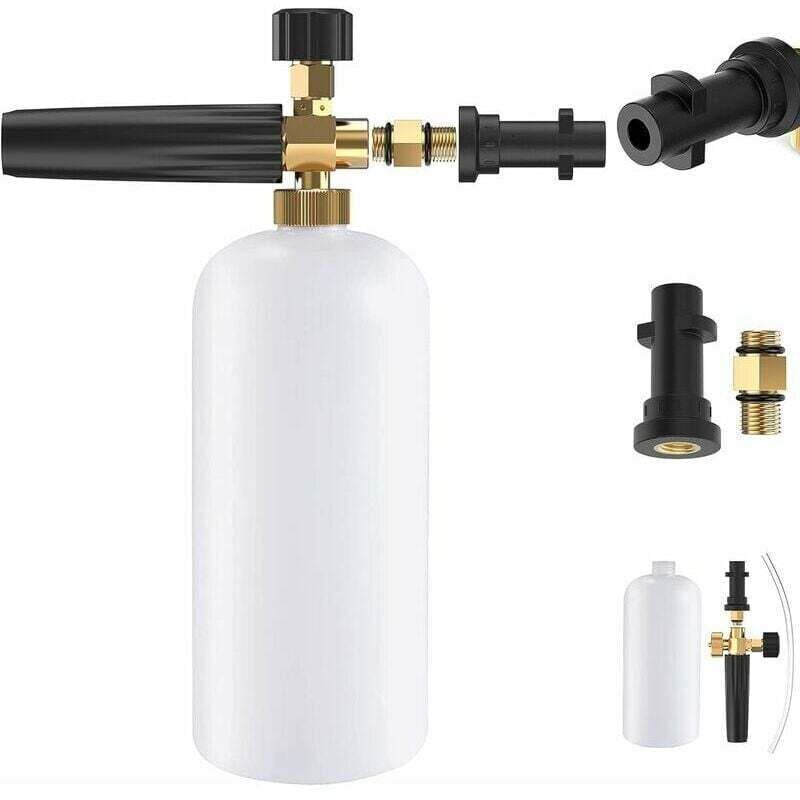 Canon à Mousse pour Voiture, 1L Lance à Mousse pour Nettoyeur Haute Pression, Pièces en Laiton, Concentration Réglable, Plage de Pulvérisation