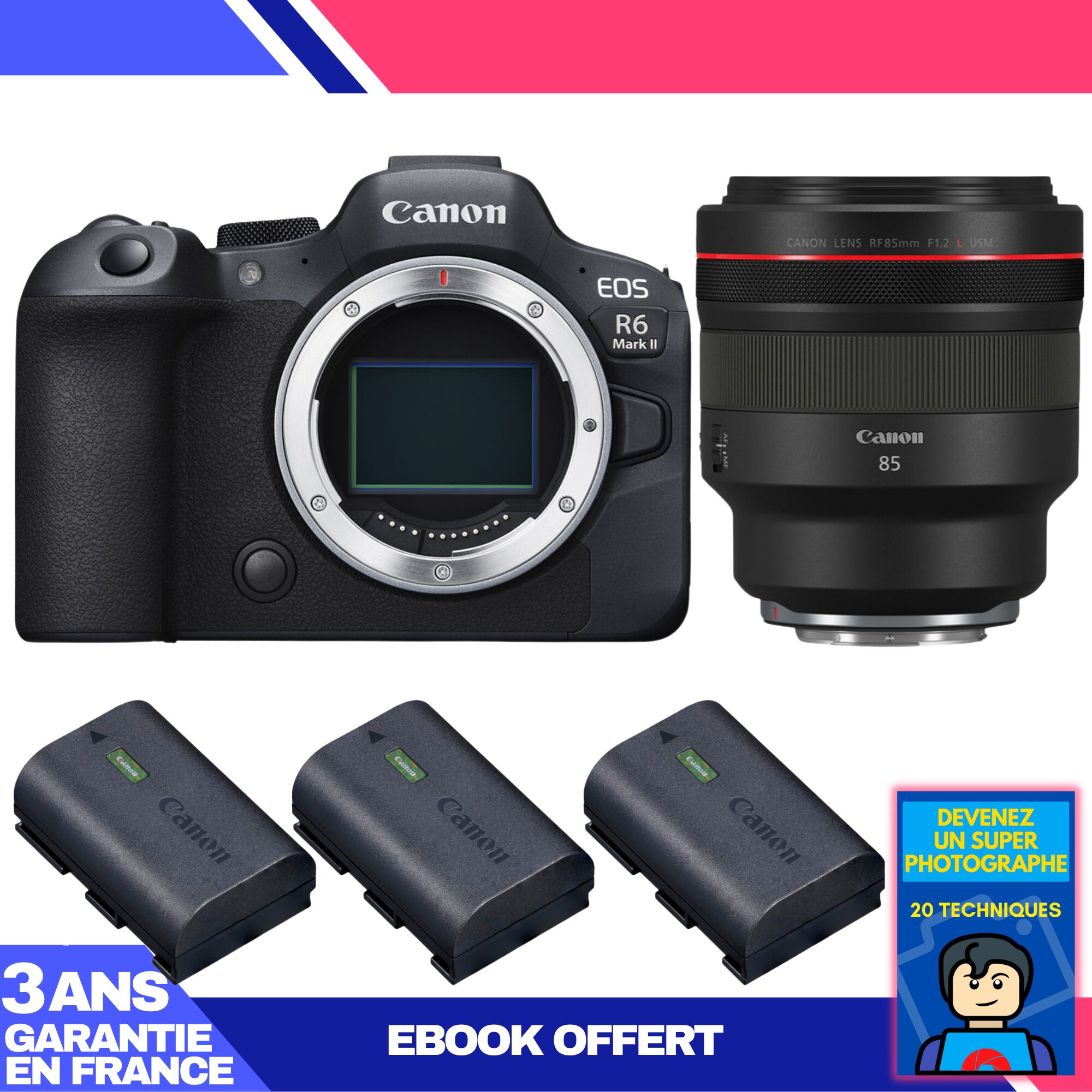 Boitier Canon EOS R6 Mark II + RF 85mm f/1.2 L USM + 3 Canon LP-E6NH + Ebook 'Devenez Un Super Photographe