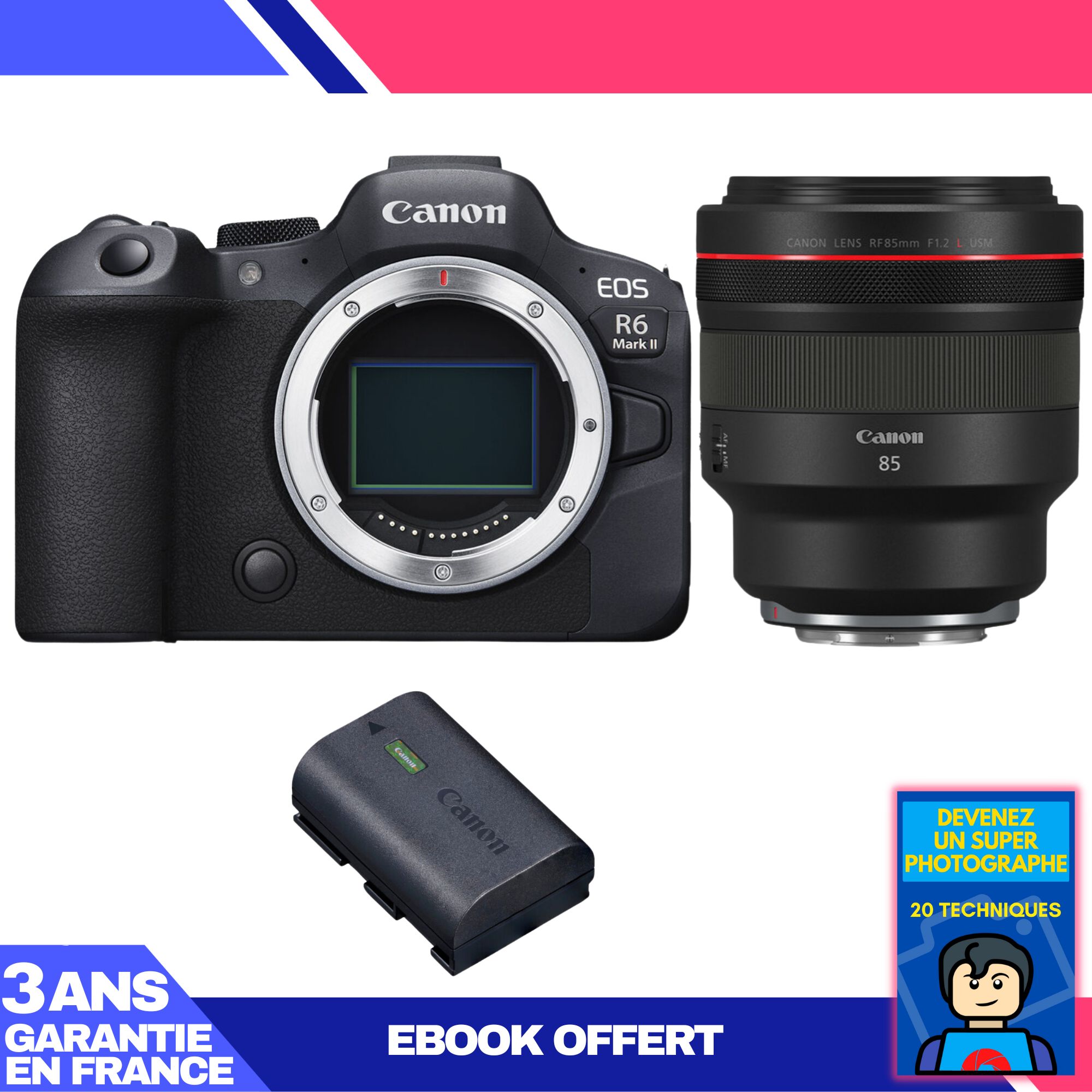 Boitier Canon EOS R6 Mark II + RF 85mm f/1.2 L USM + 1 Canon LP-E6NH + Ebook 'Devenez Un Super Photographe