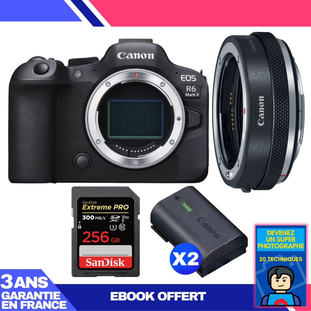 Boitier Canon EOS R6 Mark II + Canon EF-EOS R Premium + 3 SanDisk 256GB Extreme PRO UHS-II SDXC 300 MB/s + 2 Canon LP-E6NH + Ebook 'Devenez Un Super Photographe