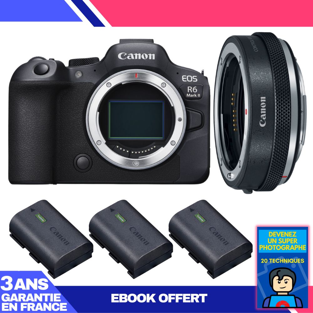 Boitier Canon EOS R6 Mark II + Canon EF-EOS R Premium + 3 Canon LP-E6NH + Ebook 'Devenez Un Super Photographe