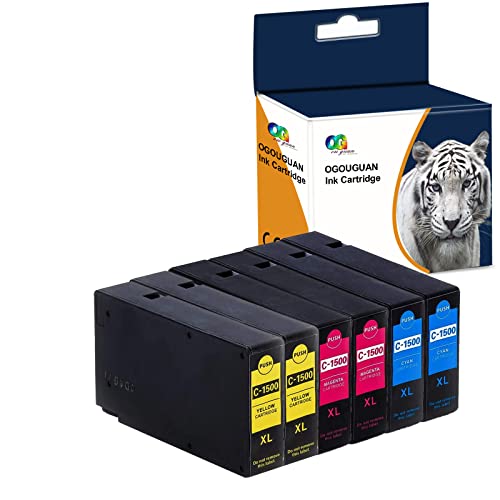 Ouguan® Compatible pour Cartouches Canon PGI-1500 XL pour Canon Maxify MB2350 MB2050 MB2300 MB2000 MB2150 MB2755 MB2155 MB275 (2Cyan/2Magenta/2Jaune)
