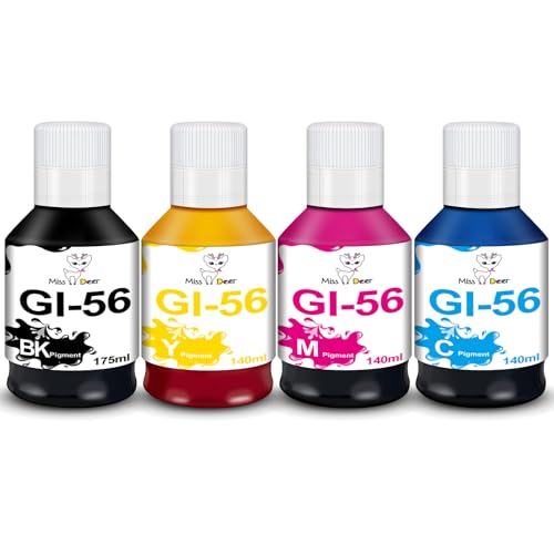 Miss Deer GI56 GI-56 Bouteilles d'encre Compatible avec Canon GI56 GI-56 GI56BK GI56C GI56M GI56Y Multipack pour Canon Maxify GX7050 GX3050 GX6050 GX4050 GX5050 (4PK)