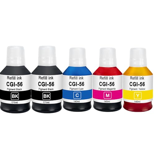 Doree Pack de 5 Bouteilles d’Encre compatibles GI-56 pour Canon MAXIFY GX7050, GX6050, GX5050, GX4050, GX3050 (2 Noir, 1 Cyan, 1 Magenta, 1 Jaune)