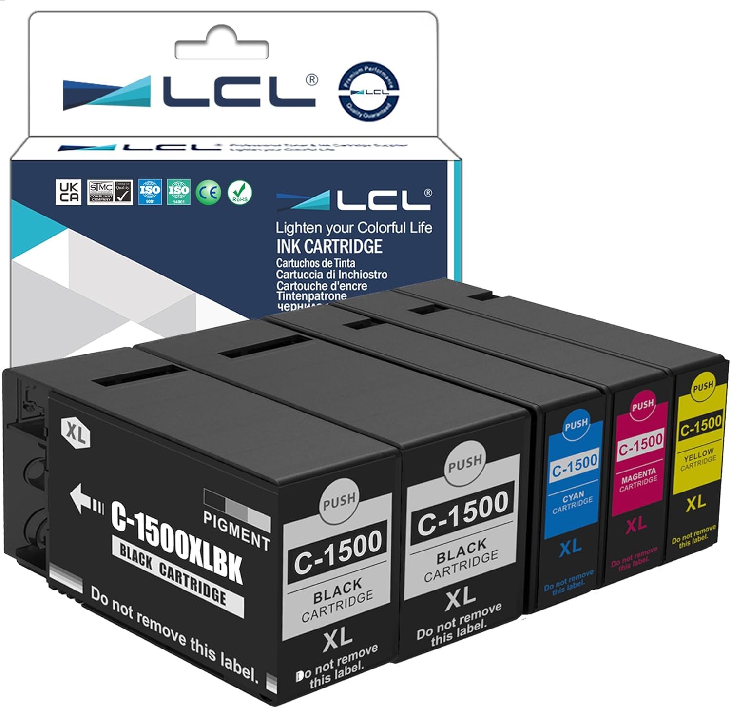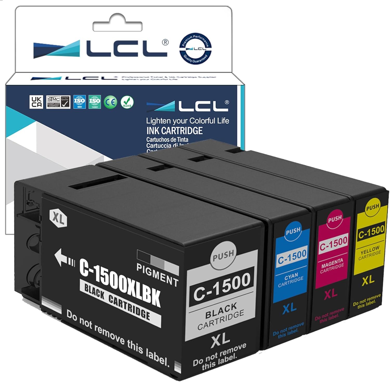 LCL Cartouche d'encre Compatible 1500XL 1500XLE PGI1500XL PGI-1500XL PGI-1500XLBK PGI-1500XLC PGI-1500XLM PGI-1500XLY (KCMY) Remplacement pour Canon MAXIFY MB2050 MB2150 MB2155