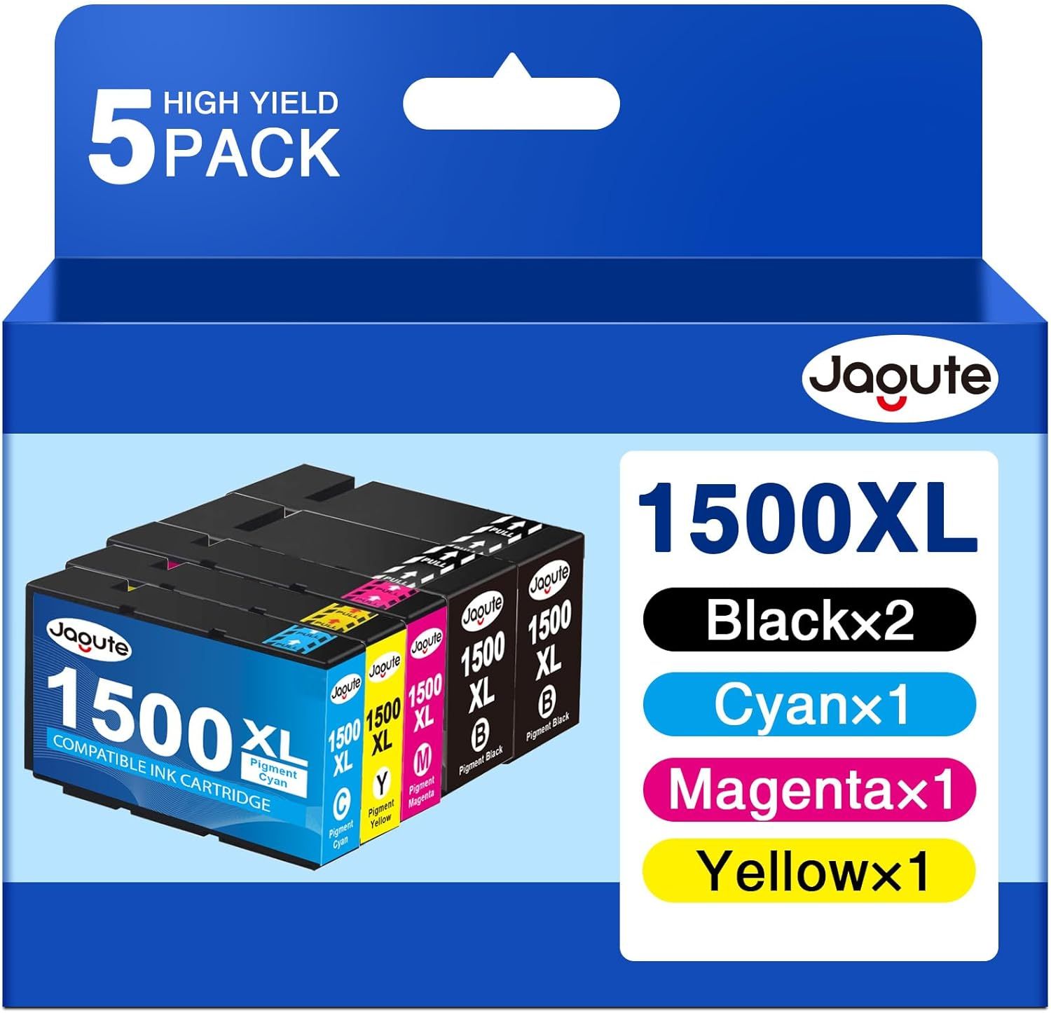 Jagute 1500XL Cartouches d'encre pour Canon PGI-1500XL PGI-1500 Remplacement pour Canon Maxify MB2050 MB2150 MB2750 MB2000 MB2050 MB2155 MB2300 MB2350, 5 Pack (2Noir, 1 Cyan, 1 Mégenta, 1 Jaune)