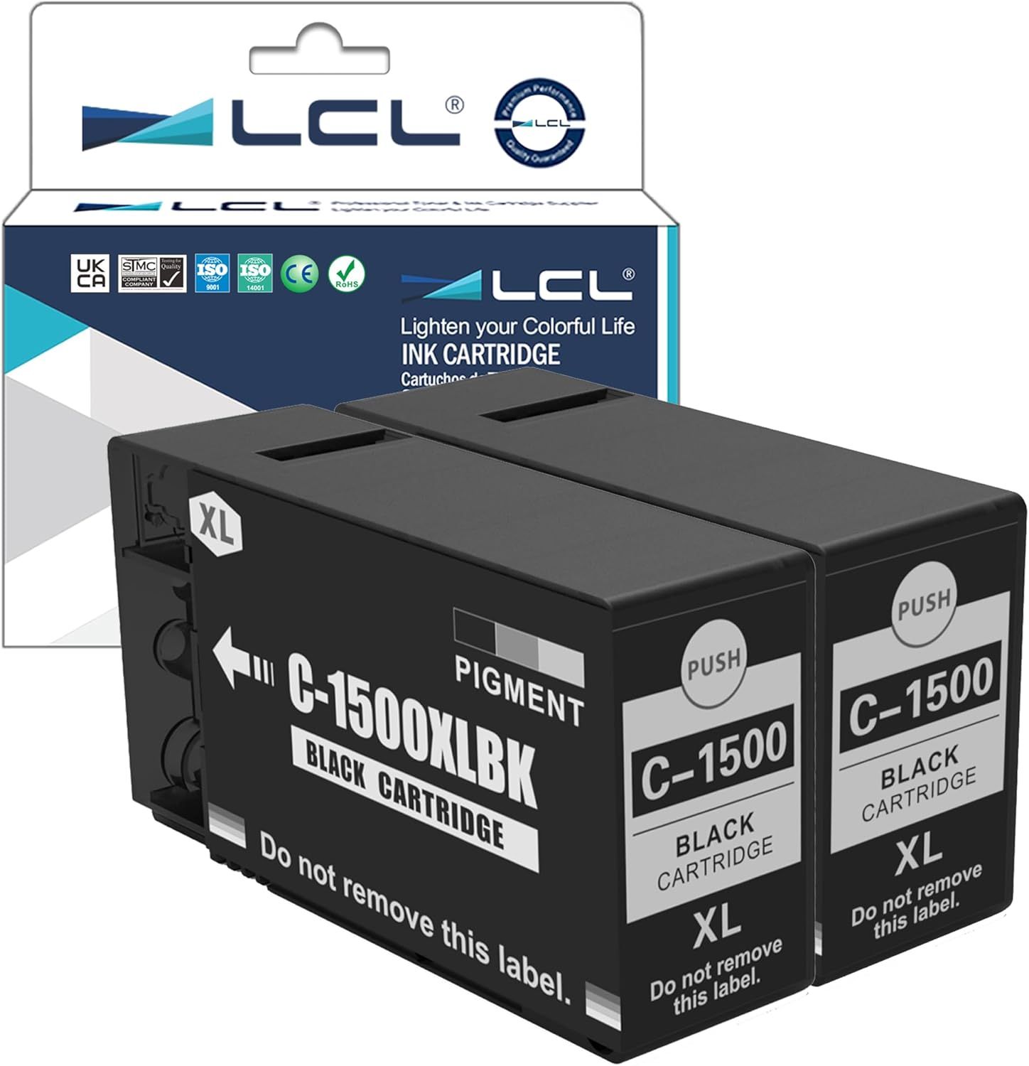 LCL Cartouche d'encre Compatible PGI-1500 PGI-1500XL PGI-1500XLBK (2 Noir) Remplacement pour Canon MAXIFY MB2050 MB2150 MB2155 MB2350 MB2750 MB2755 MB2300 MB2000