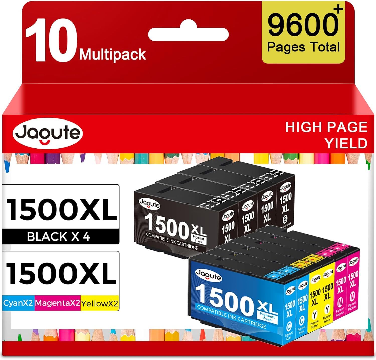 Jagute 1500XL Cartouches d'encre pour Canon PGI-1500XL PGI-1500 Remplacement pour Canon Maxify MB2050 MB2150 MB2750 MB2000 MB2755 MB2155 MB2300 MB2350, 10 Pack (4Noir, 2 Cyan, 2 Mégenta, 2 Jaune)