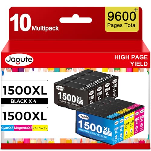 Jagute 1500XL Cartouches d'encre pour Canon PGI-1500XL PGI-1500 Remplacement pour Canon Maxify MB2050 MB2150 MB2750 MB2000 MB2755 MB2155 MB2300 MB2350, 10 Pack (4Noir, 2 Cyan, 2 Mégenta, 2 Jaune)