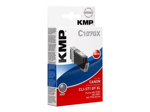 KMP C107GX - 11 ml - à rendement élevé - gris - compatible - cartouche d'encre (alternative pour : Canon CLI-571GYXL) - pour Canon PIXMA MG7750, MG7751, MG7752, MG7753, TS8050, TS8051, TS8052, TS8053, TS9050, TS9055