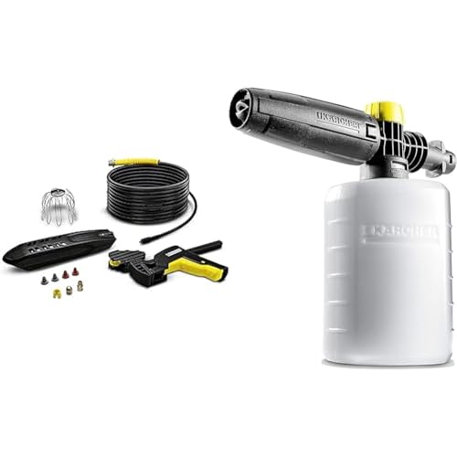 Kärcher Nettoyeur gouttières/canalisations 20 m Accessoire pour nettoyeurs Haute Pression, Noir et Jaune & Canon à Mousse 0,6L Accessoire pour nettoyeurs Haute Pression, Noir