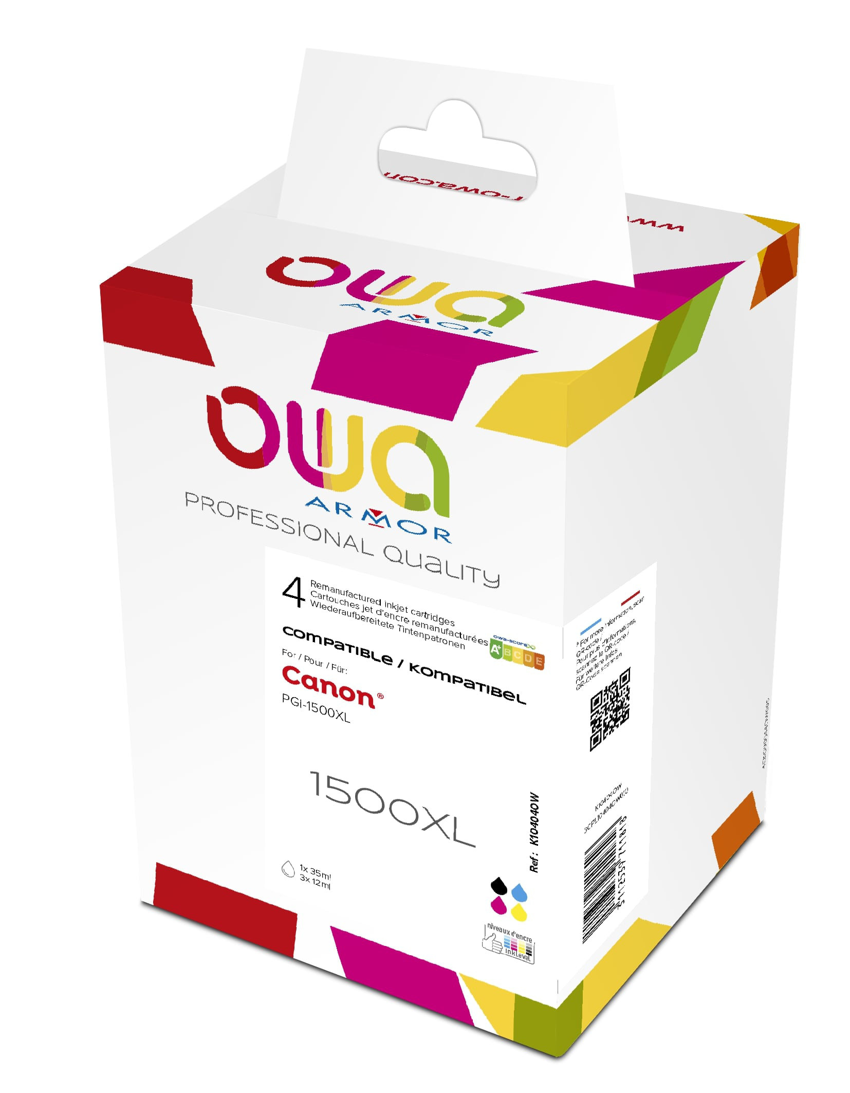 OWA Cartouche d'encre compatible CANON PGI-1500XL - K10404OW - Pack de 4 (Noir, Cyan, Magenta, Jaune)