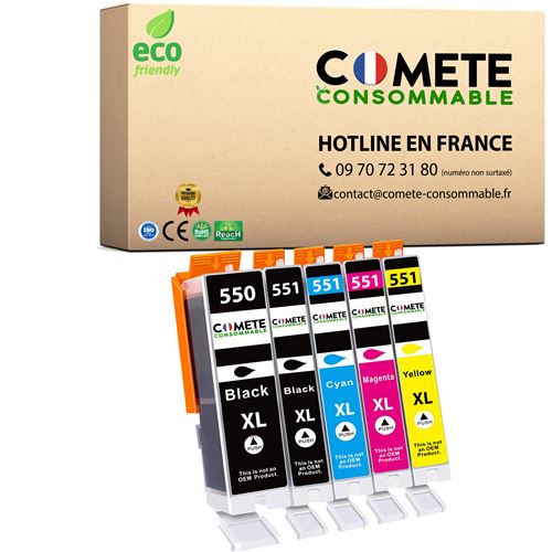 COMETE CONSOMMABLE 550 551 XL - Pack de 5 Cartouches d'encre compatibles avec CANON PGI-550 CLI-551 XL PGI550 CLI551 XL 550XL 551XL 2 Noir + 1 Cyan + 1 Magenta + 1 Jaune