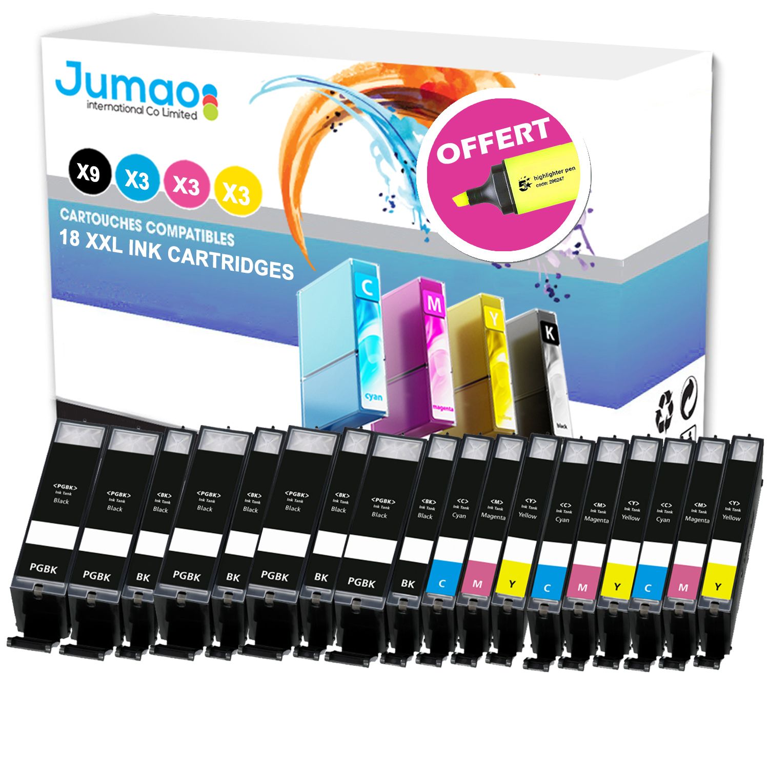 Lot de 18 cartouches jet d'encre type Jumao compatibles pour Canon Pixma TS5051 +Fluo offert
