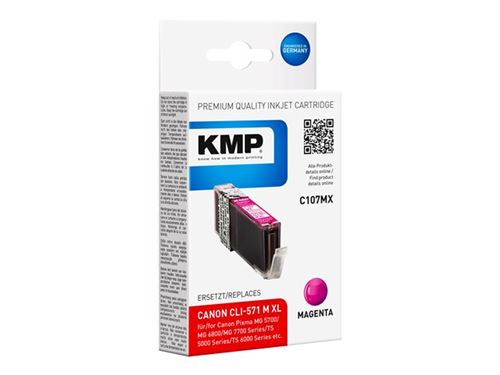KMP C107MX - 11 ml - à rendement élevé - magenta - compatible - cartouche d'encre (alternative pour : Canon 0333C001, Canon CLI-571MXL) - pour Canon PIXMA TS5051, TS5053, TS5055, TS6050, TS6051, TS6052, TS8051, TS8052, TS9050, TS9055