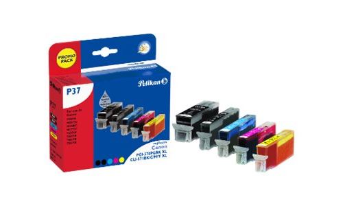 Pelikan P37 - Pack de 5 - noir, jaune, cyan, magenta - compatible - cartouche d'encre - pour Canon PIXMA TS5051, TS5053, TS5055, TS6050, TS6051, TS6052, TS8051, TS8052, TS9050, TS9055