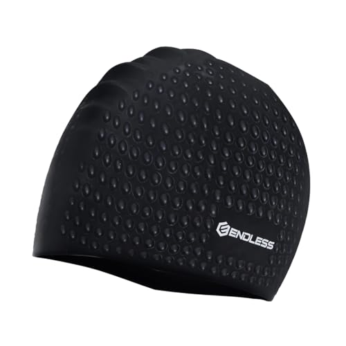 Endless EL1021 Comfortable Silicon Swimming Cap with Bubble Design | Black | Material : Silicon | Elastic Waterproof Swimming Cap for Long and Short Hair with Thicker Edge | for Adults, Women and Men