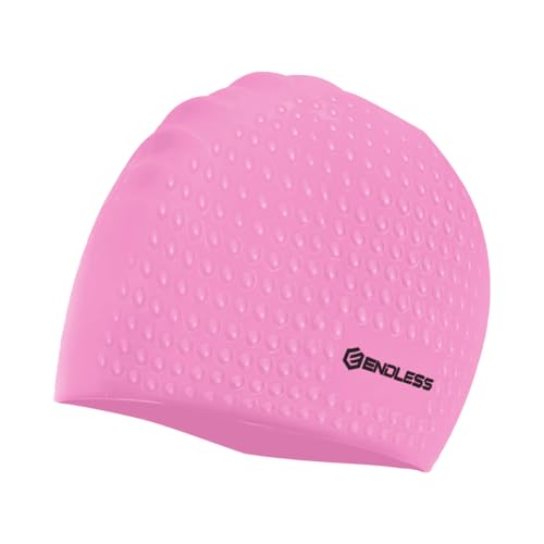 Endless EL1021 Comfortable Silicon Swimming Cap with Bubble Design | Pink | Material : Silicon | Elastic Waterproof Swimming Cap for Long and Short Hair with Thicker Edge | for Adults, Women and Men