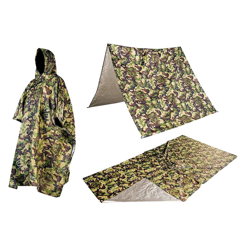 Azeekoom Poncho Pluie Imperméable Cape de Pluie, Poncho/Tapis de Camping/Ombre de Camping Multifonctions 3 en 1 pour la Randonnée en Plein Air