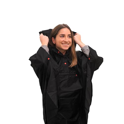 SMATI Poncho de Pluie Imperméable avec Capuche, Cape de Pluie, Bandes Réfléchissantes devant et derrière, Voyage, Activité en Plein Air, Vélo, Moto, Randonnée, pour Hommes et Femmes, NOIR