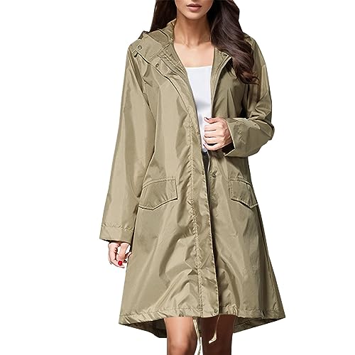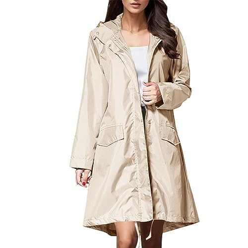 Coupe Vent Femme Pliable Beige Blouson Veste de Pluie Ciré Legere Imperméable Parka Cape Mi Saison Grande Taille Manteau Zip Anti-Pluie Trench Coat Raincoat Vêtements