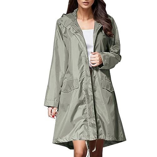 Cape De Pluie, ImperméAble Femme à Capuche LéGer Manches Longues Coupe-Vent Fermeture éClair Et Cordon De Serrage avec Poches