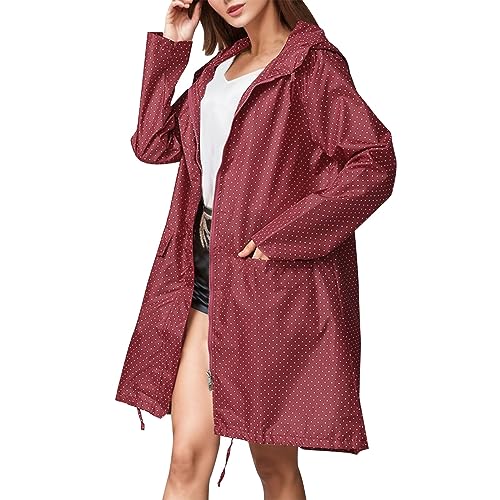 Cape De Pluie Femme, ImperméAble Imprimé pour Femme avec Capuche Coupe-Vent LéGer à Manches Longues Fermeture éClair Et Cordon De Serrage Poches