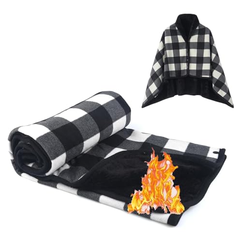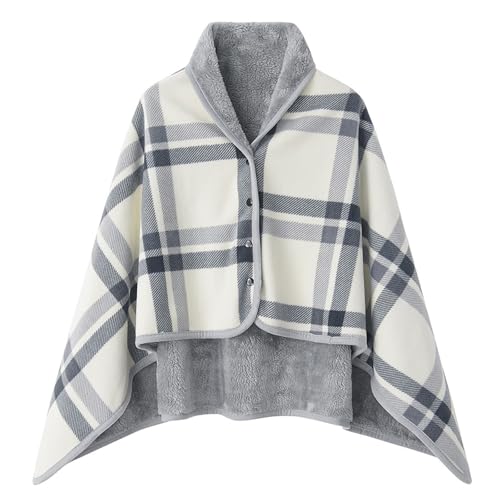 SIVENKE Poncho portable en polaire pour femme - Couverture à carreaux - Confortable - Poncho en peluche - Couverture enveloppante - Cape avec boutons - Pour lit, canapé, bureau