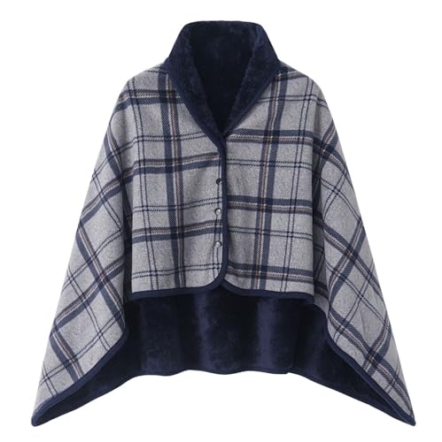 Femme Poncho Polaire Plaid, Poncho Châle Femme Hiver avec Boutons, Écharpe Cape Chaud en Flanelle Couverture à Carreaux pour la Maison Bureau École(Size:100x150cm,Color:Blue)