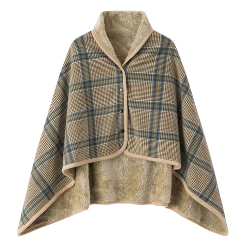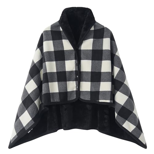 TBloevwlh Poncho Femme Polaire Plaid Châle Polaire Cape Chaud d'hiver avec Boutons Couverture à Carreaux, Deux Tailles