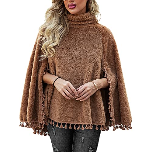Générique Chic Peignoir Femme Hiver Polaire Cocooning Cape Long Chaud Laine Pull Capuche Automne Sweat Veste Pilou Coffee M