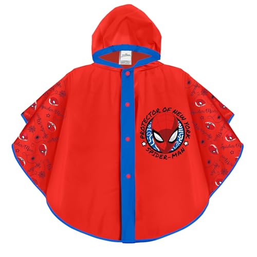 PERLETTI Poncho Pluie Spider Rouge pour Enfant 3 4 5 6 Ans - Vetement Garçon Impérmeable Protection Neige - Cape de Pluie Bleu avec Capuche et Boutons Homme Araignée (Rouge)