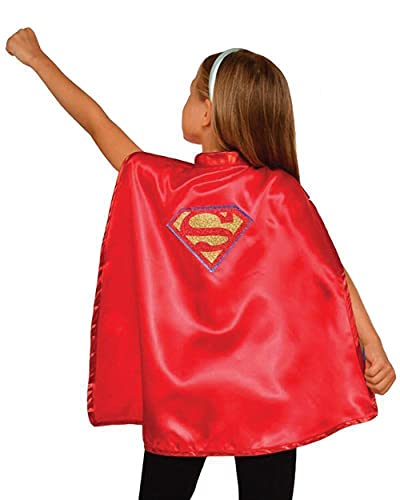 RUBIE'S DC Superhero Girls - Supergirl - Accessoires Déguisement pour Enfants - Taille Unique - Cape Rouge, Serre-Tête Bleu Clair - Pour Halloween, Carnaval - Idée Cadeau de Noël