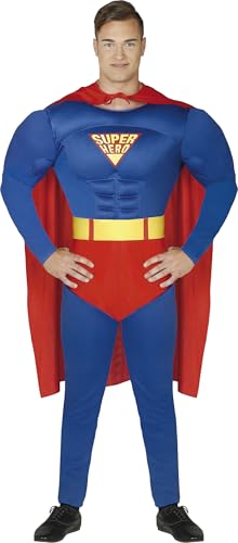 FIESTAS GUIRCA Déguisement de Super-Héros Volant - Déguisement de Héros de Bande Dessinée avec Cape Rouge - Déguisement Homme Taille S 46-48